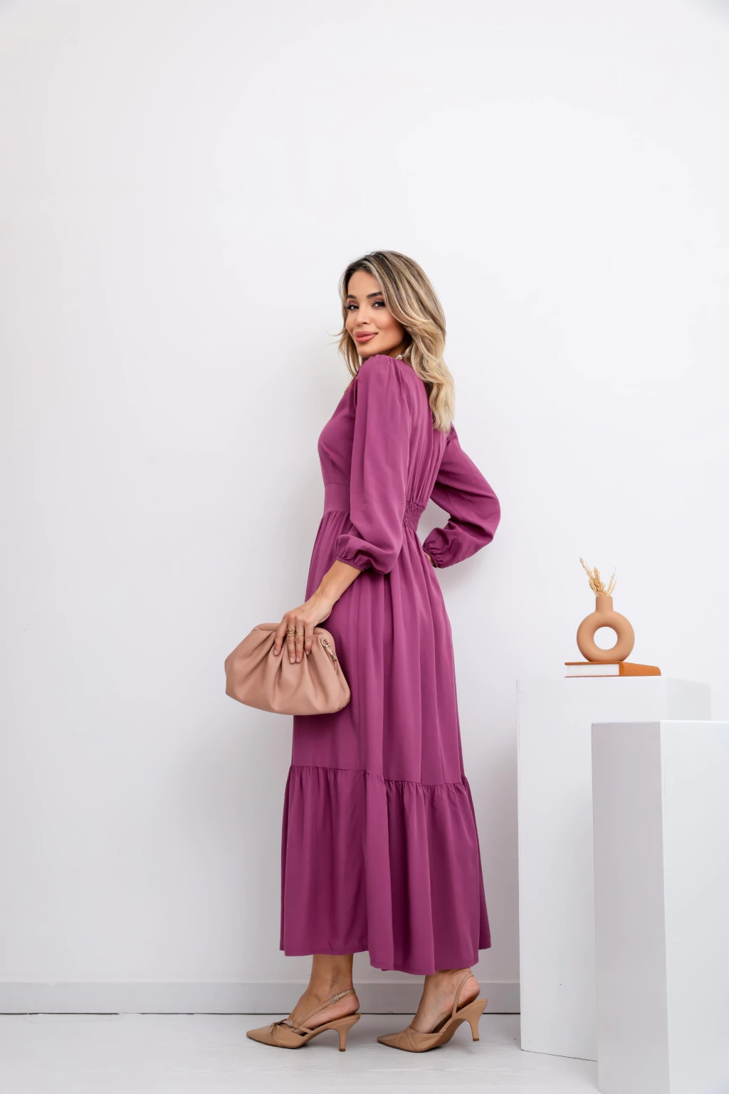 Vestido longo feminino confeccionado em tecido viscolinho. Modelo com manga longa, ideal para quem busca conforto, elegância e um visual comportado. Possui ótimo caimento, toque leve e é perfeito para o dia a dia, eventos sociais ou ambientes que exigem discrição.
